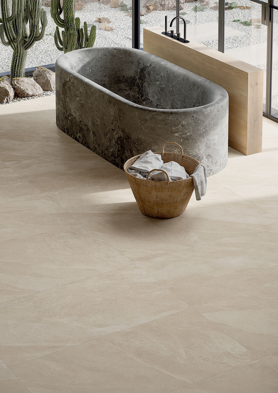 De Atlantis-serie is ontworpen om moeiteloos te combineren met hout, lichte betonlooks en moderne interieuraccenten. De tint Sabbia creëert een warme en harmonieuze basis die perfect past in landelijke, moderne, minimalistische en Scandinavische woonstijlen. Voor buitentoepassingen zijn er ook Grip en Roc afwerkingen beschikbaar.