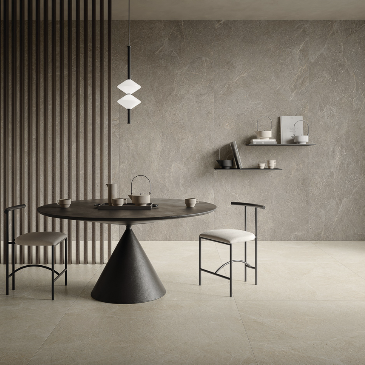 Met het royale formaat van 120×280 cm creëer je een bijna naadloos oppervlak met minimale voegen. Dit zorgt voor een strak en luxueus effect in woonkamers, badkamers en commerciële ruimtes. Ook het formaat 120×120 cm en 60×120 cm bieden een modern en krachtig resultaat met een natuurlijke steenuitstraling.